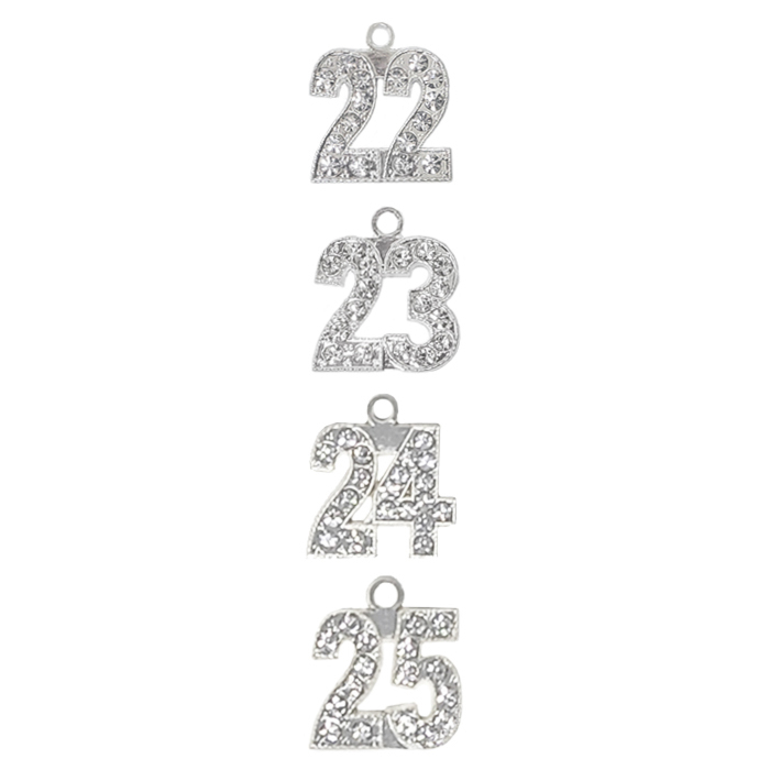 Bling your graduation tassel with a rhinestone studded year charm. The rhinestones are sure add sparkle to your tassels! Please note that bling charms are silver with rhinestones, but the metal band around the tassels are gold.