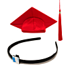 Headband: The black headband has a small adhesive square that you can attach to the inside of the cap. This helps to keep the cap in place on the graduate's head. This is great for allowing more freedom of movement for all and for those with thicker hair.