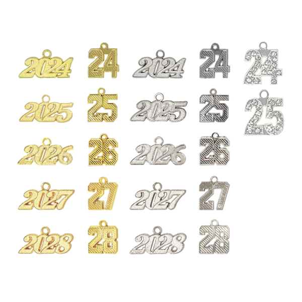 Year charms for graduation tassels and key rings.