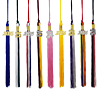 Tassels: 4 digit year charms and metal bands around the tassel head are gold. If you choose a silver year charm, it will not match the metal band