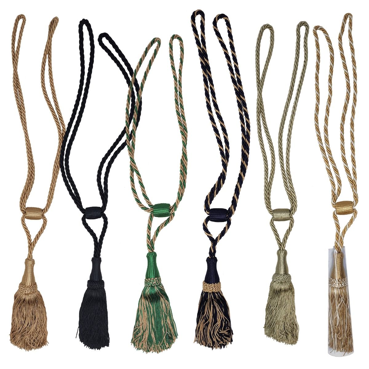 Trim and Tassels has been selling beautiful hand made curtain tiebacks for decades. These curtain tiebacks add just the right amount of decor to your window treatment. They are made of rayon and available in various colors. Click on the drop down list to view list of available colors. For any questions please call us at 1800-477-3459 or 973-808-1566. This is a clearance item. All clearance items are final sale. No returns / exchanges.